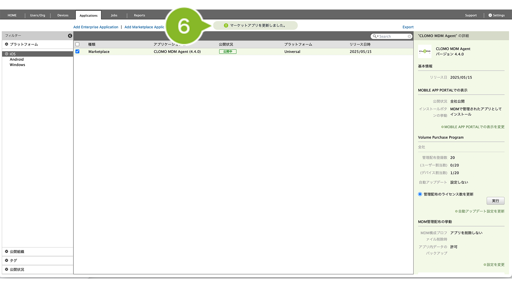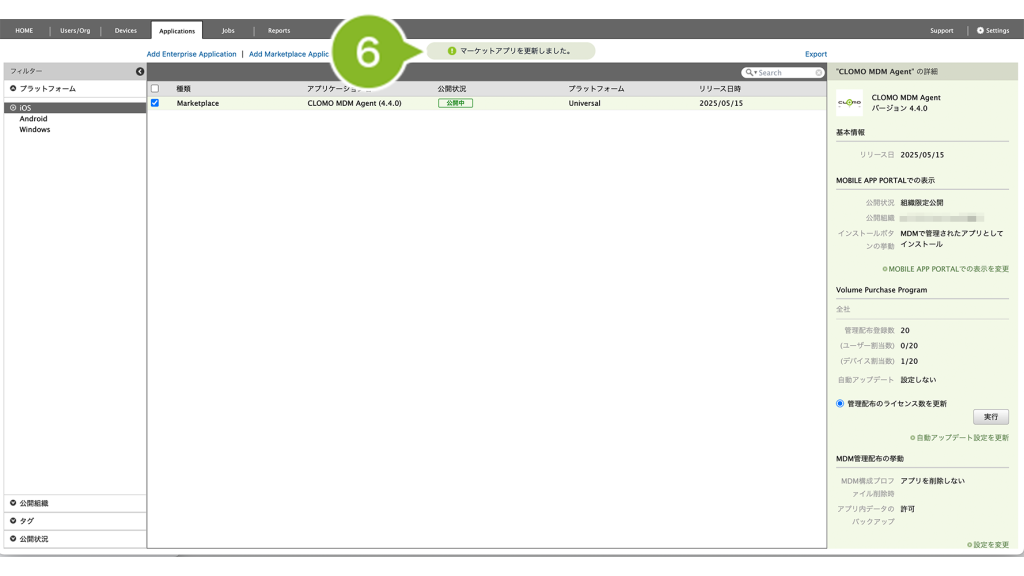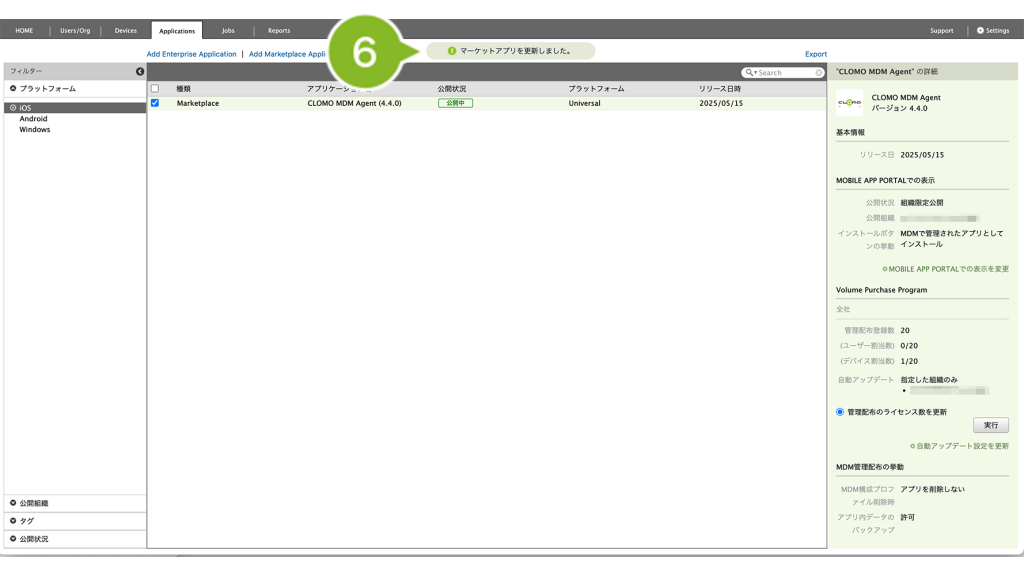 なお、VPP ライセンス購入後に時間が経過している場合は、本操作を実施していなくても自動でアプリケーションの情報が Applications 画面に反映されます。