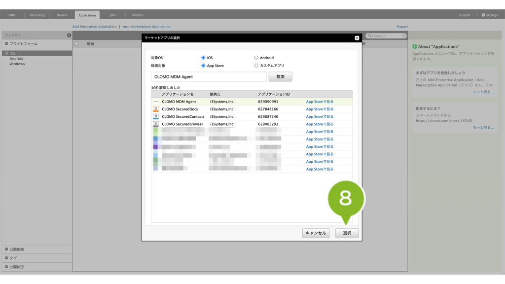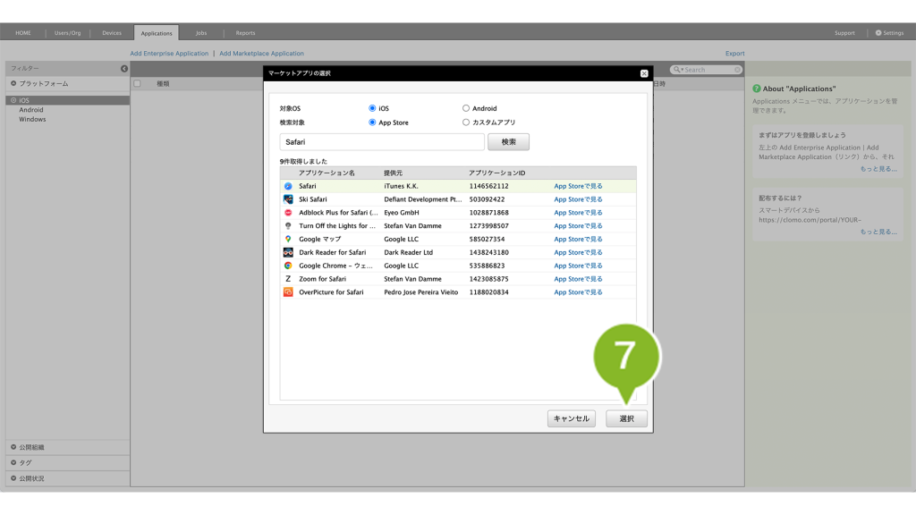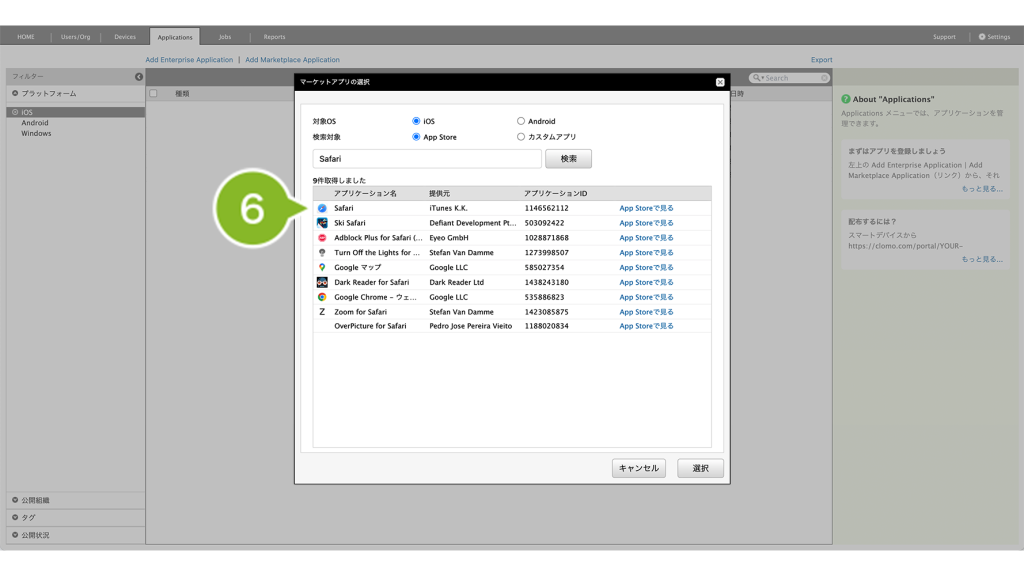 8. 登録したいアプリケーションをクリックします。