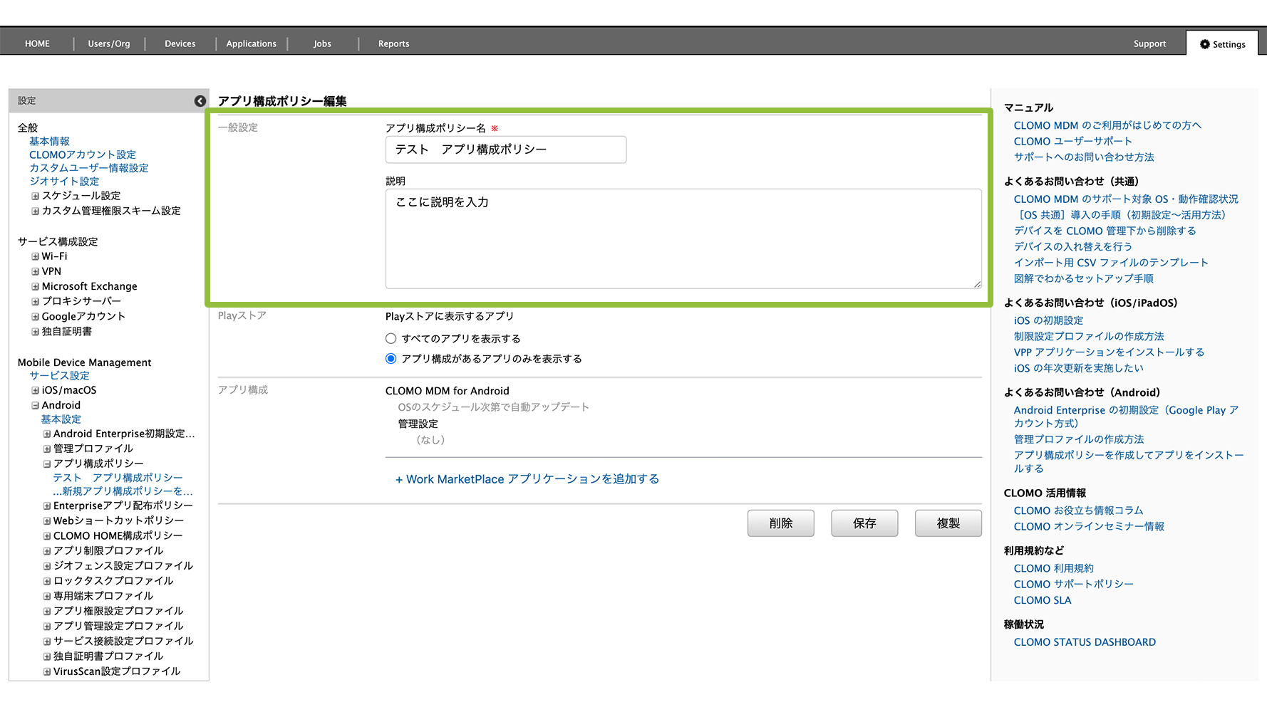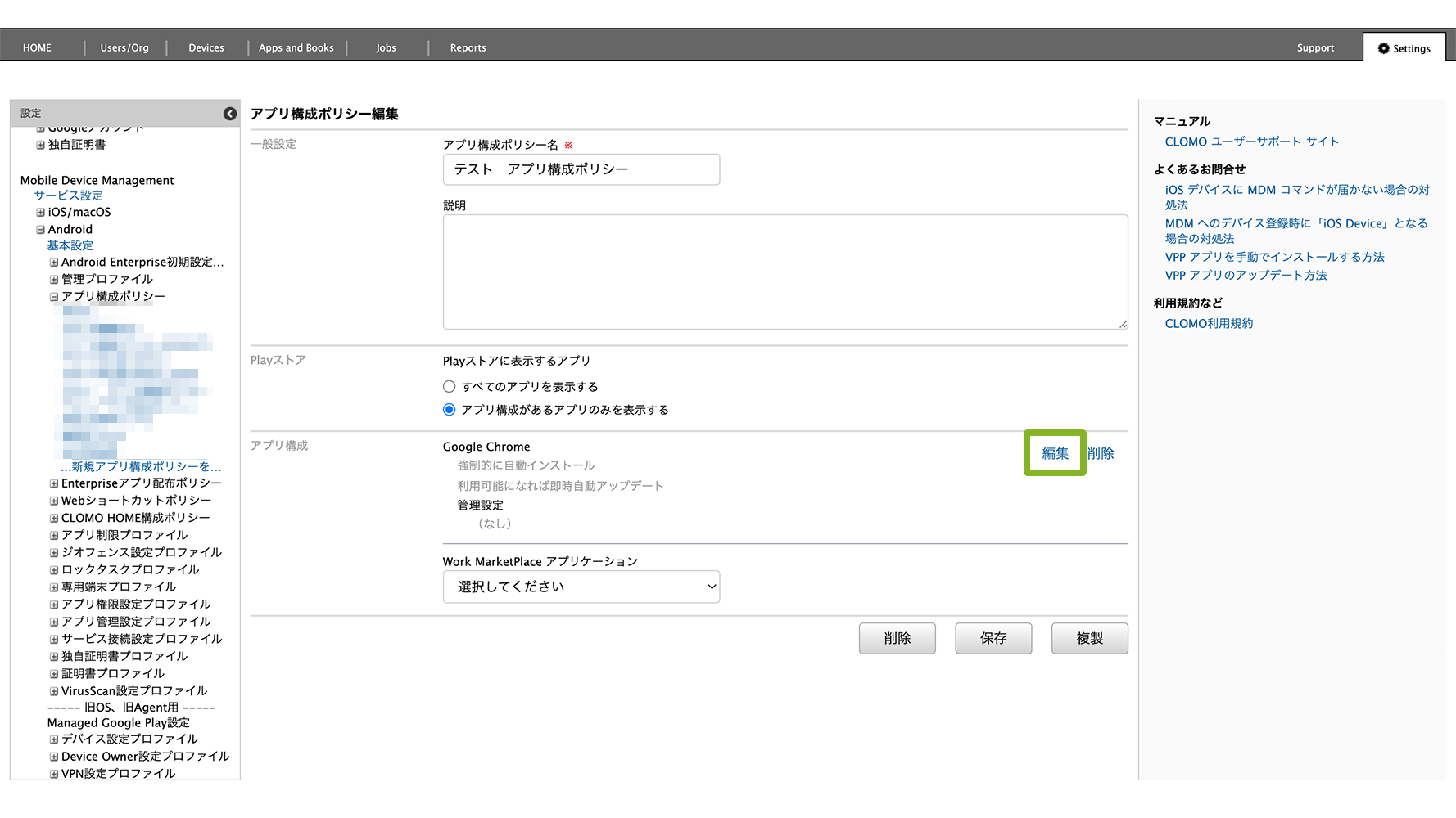 ・「アプリ構成ポリシー」の作成・編集・複製・削除方法を確認したい方