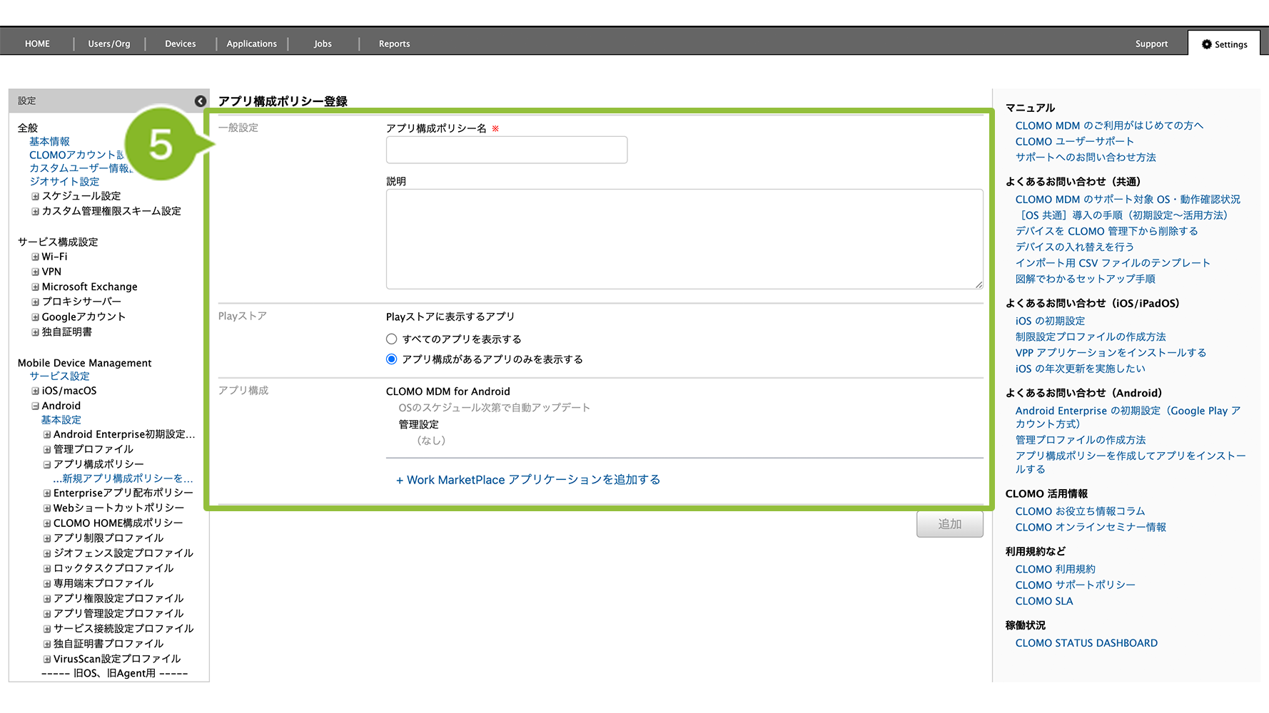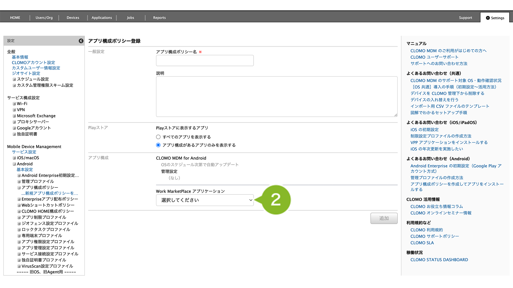 Android デバイスに Work MarketPlace アプリケーションを配布する場合は、必須設定となります。