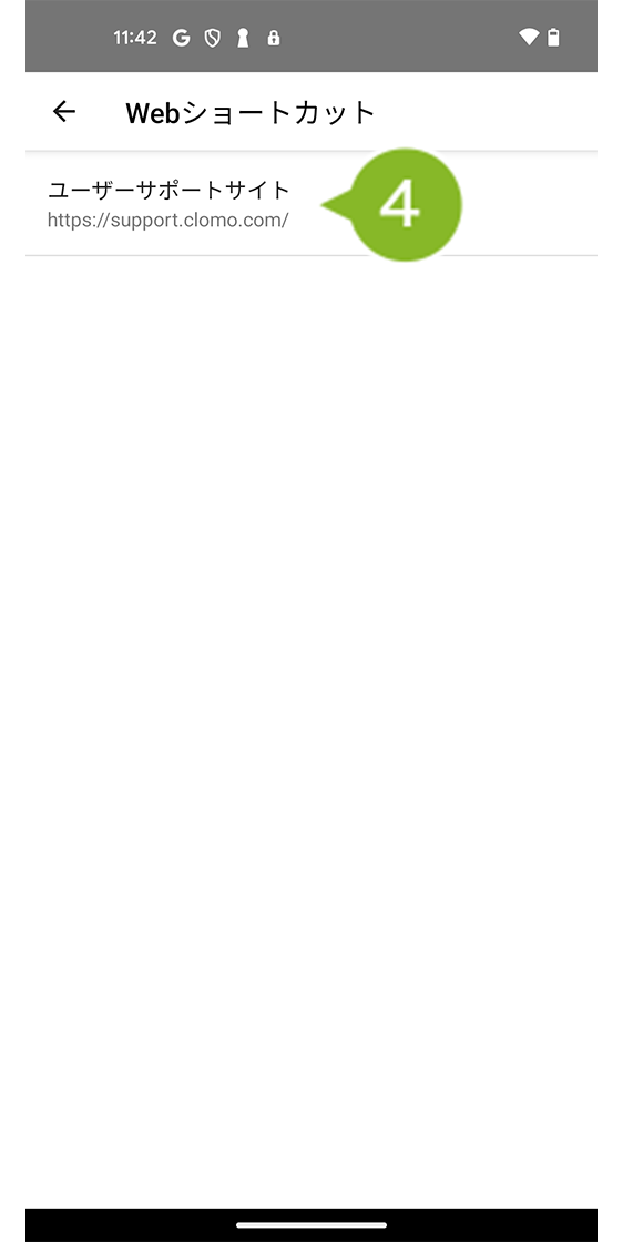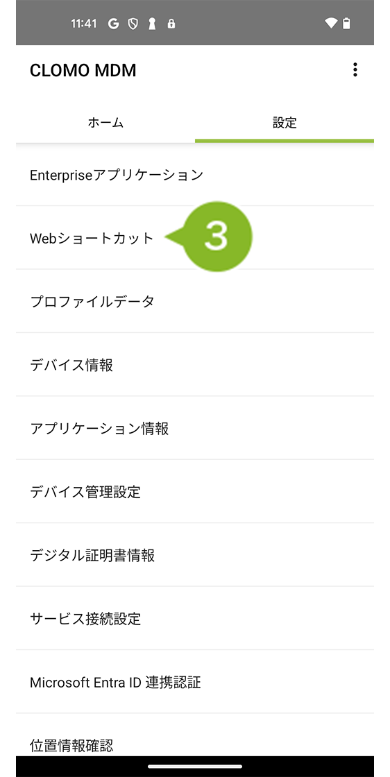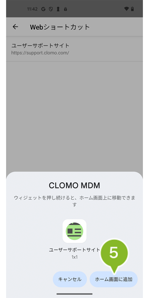 ※ Web ショートカットポリシー適用後にホーム画面へ Web ショートカットを表示させるには、デバイス側で CLOMO MDM Agent for Android からの操作が必要です。