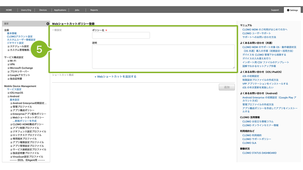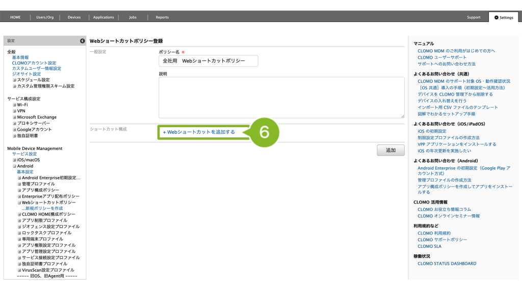 「Web ショートカットポリシー」の作成手順は、以下のとおりです。