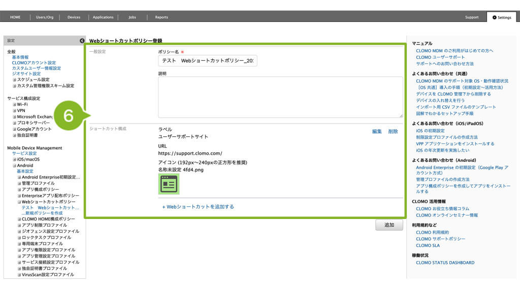 操作方法については、Web ショートカットポリシー適用後のデバイス操作をご参照ください。
