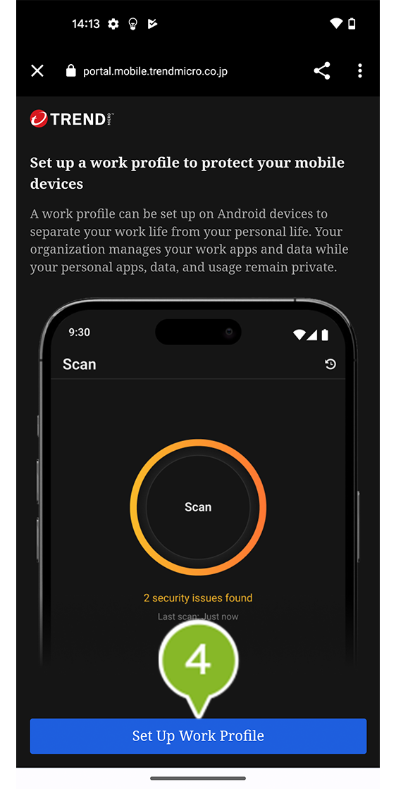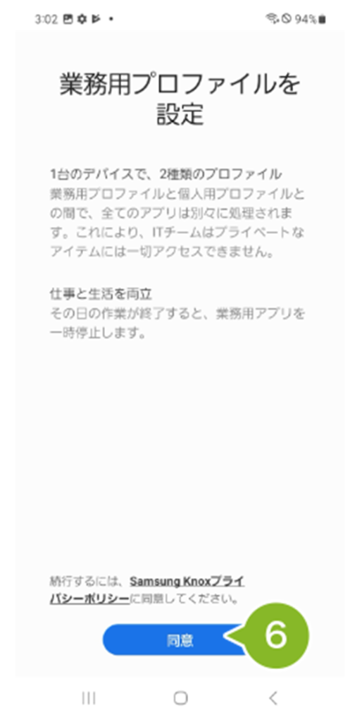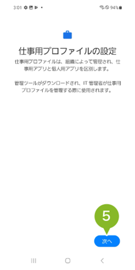5. 「仕事用プロファイルの設定」が表示されたら[次へ]をタップします。