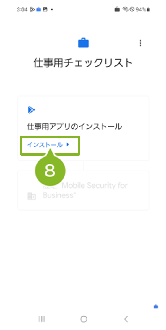 8. 仕事用チェックリスト画面が表示されます。[インストール]をタップします。