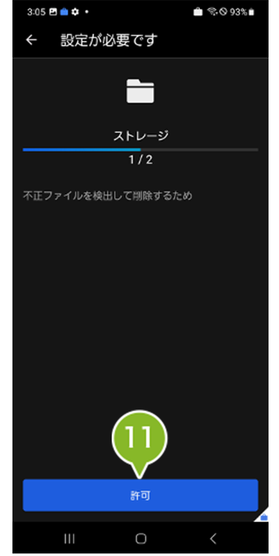 12. ストレージに対する許可画面が表示されたら[許可]をタップします。