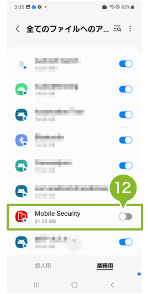 13. すべてのファイルアクセス画面が表示されたら「Mobile Security」項目を有効化にします。