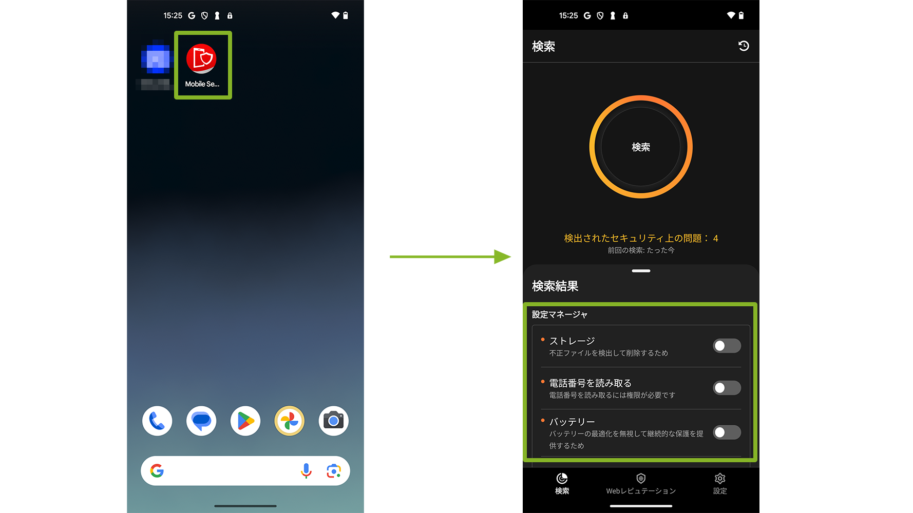 デバイスにインストールされた「Mobile Security for Business」を起動します。