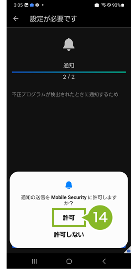 14. 通知の送信許可画面が表示されたら[許可]をタップします。