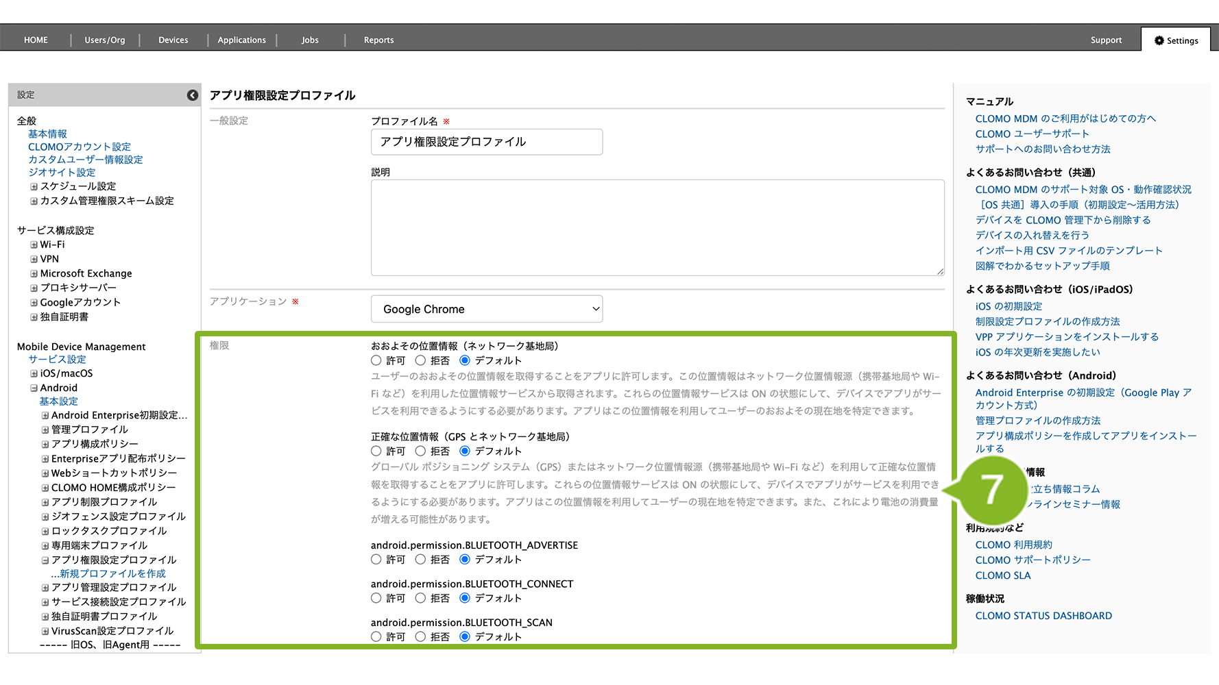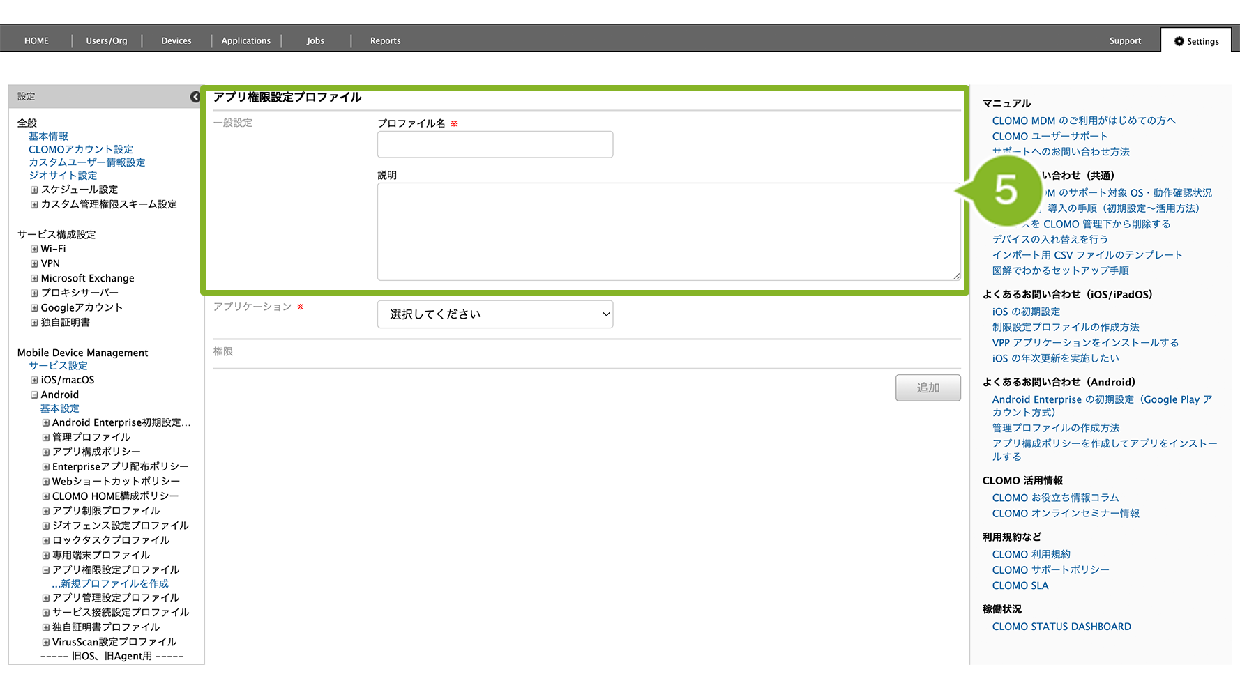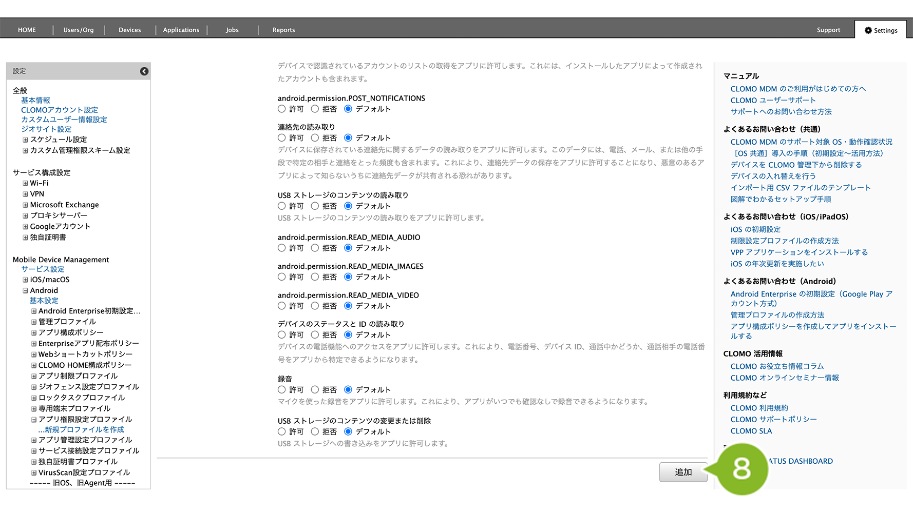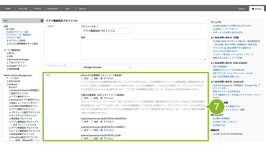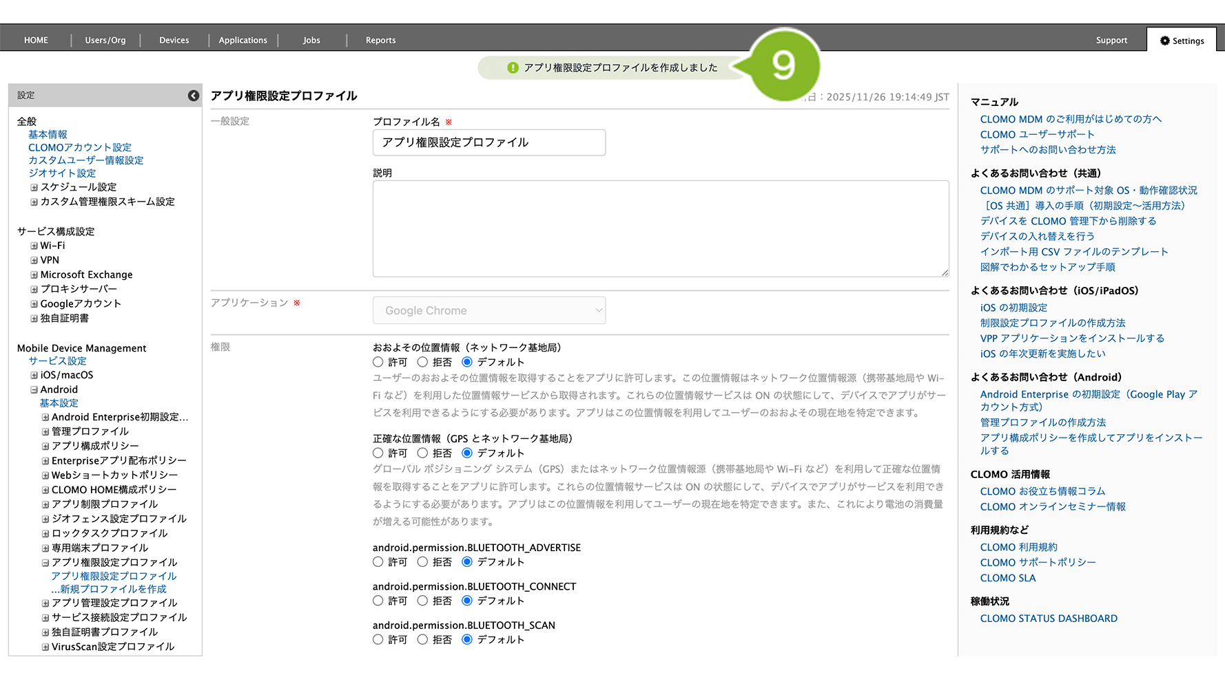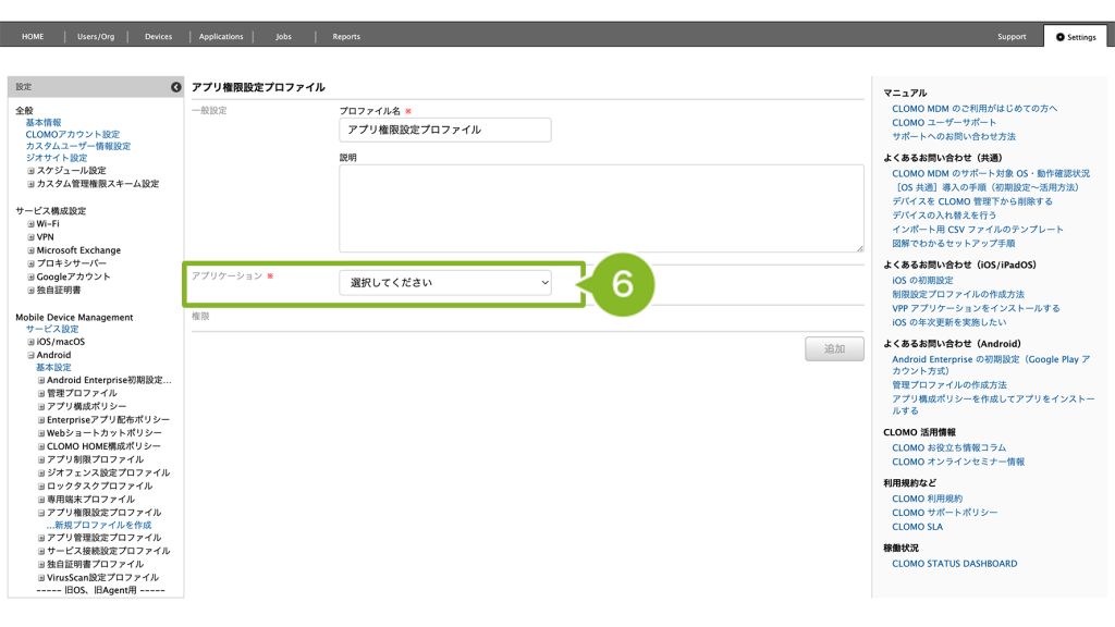 アプリ権限設定プロファイルの作成