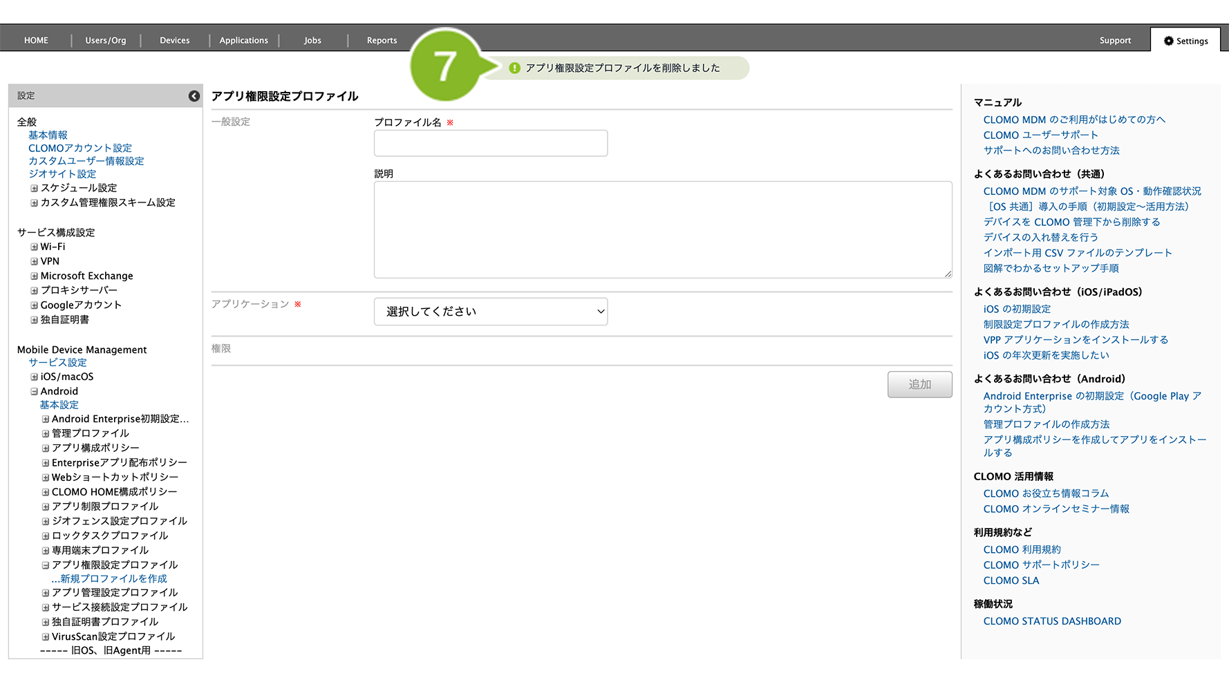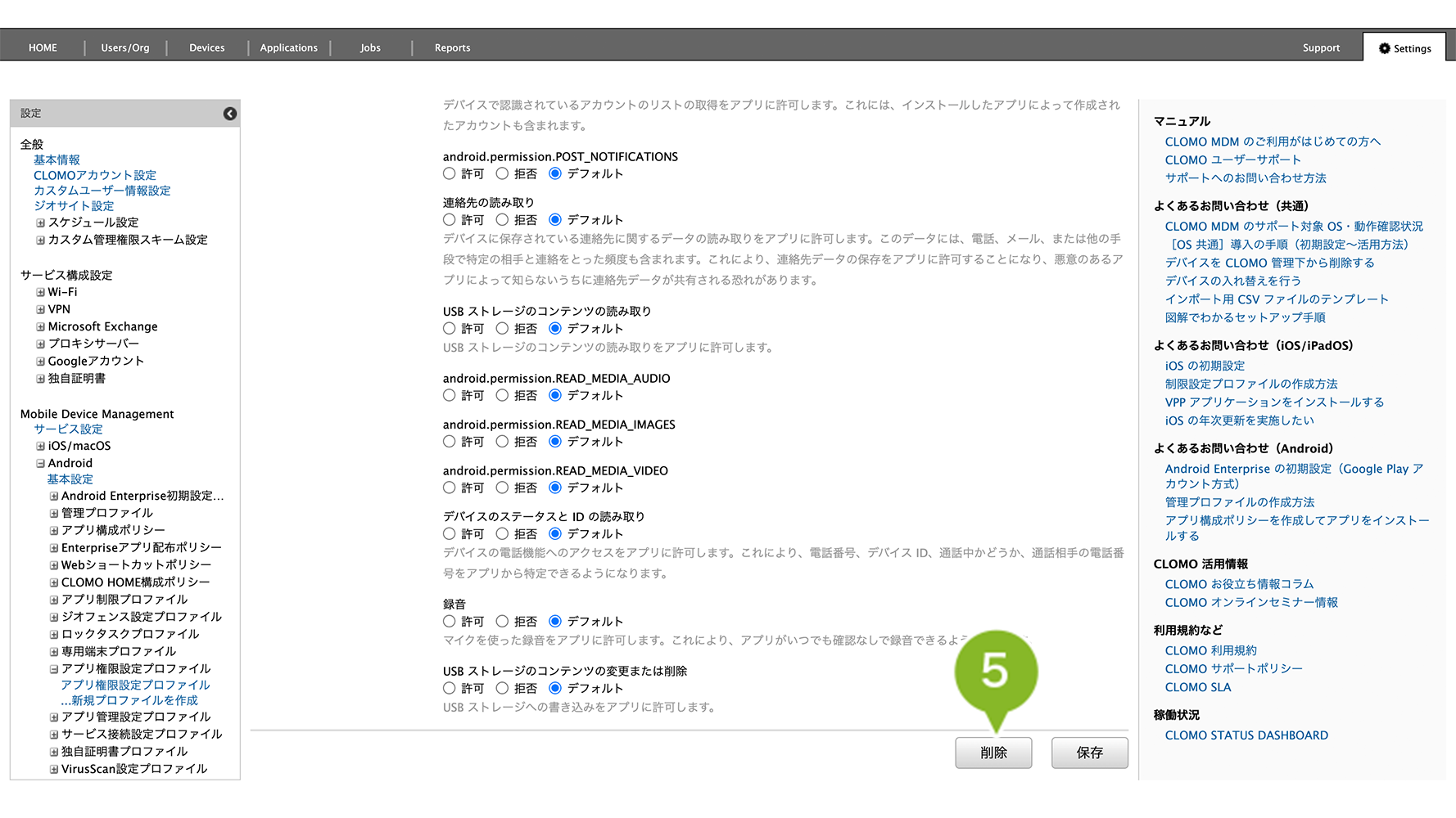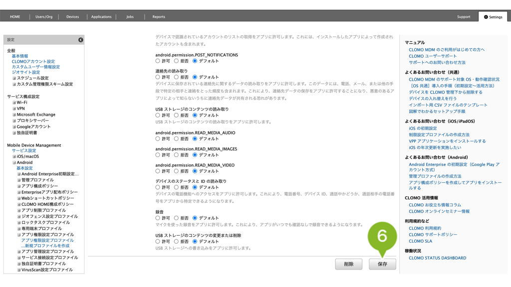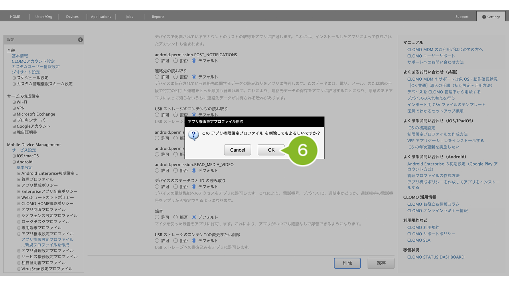 アプリ権限設定プロファイルの削除