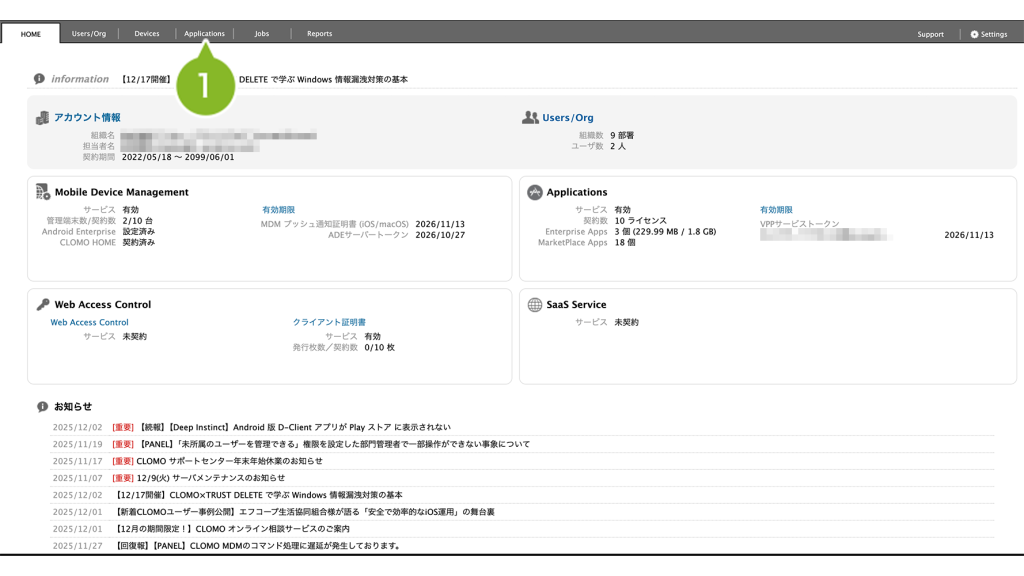 ・CLOMO MDM に登録したアプリケーションを検索する場合