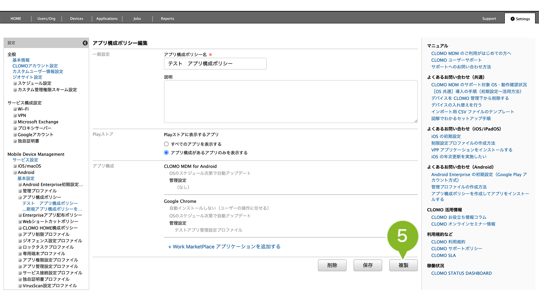 管理プロファイルの複製方法については、こちらをご参照ください。