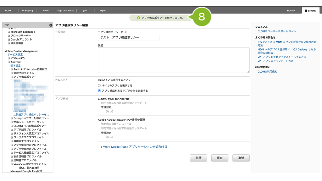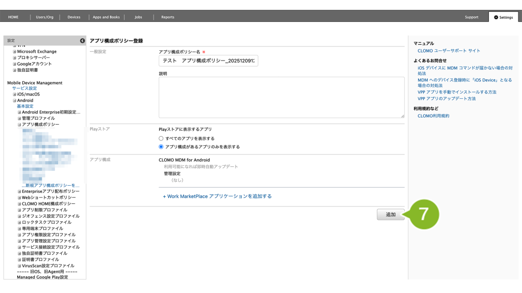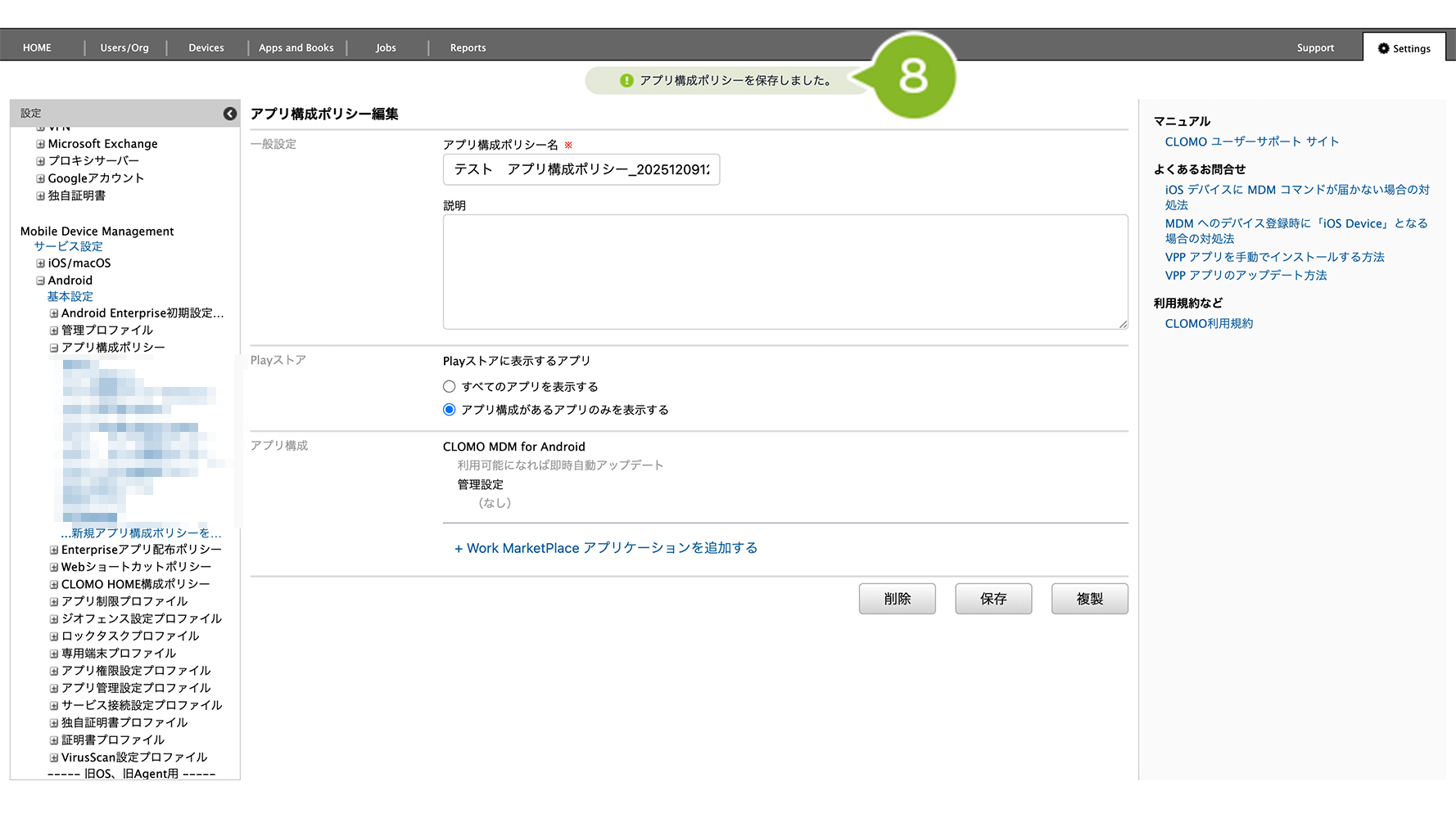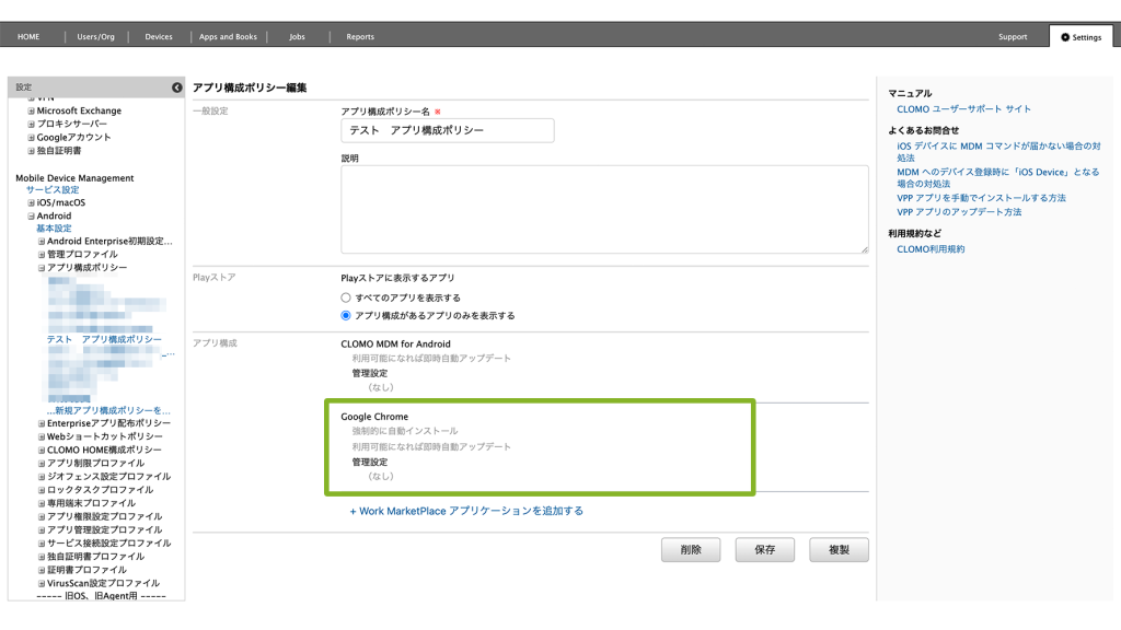 ポリシー作成後、デバイスに作成したアプリ構成ポリシーを適用します。詳しくは、インストールする(MarketPlace アプリケーション)をご参照ください。