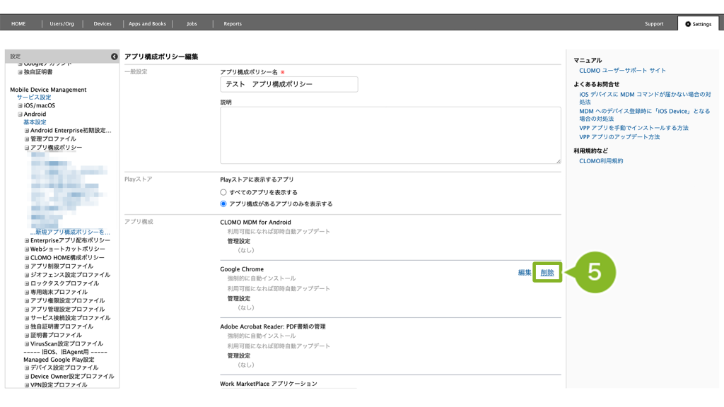 ※ プライベートアプリ(限定公開アプリ)、ウェブアプリ(特定の Web サイトを登録して配布)をアンインストールする場合も本ページをご参照ください。
