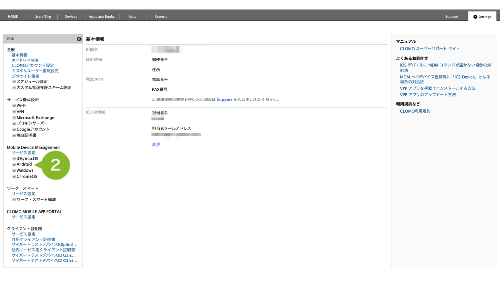2. Mobile Device Management の [ Android ] をクリックします。