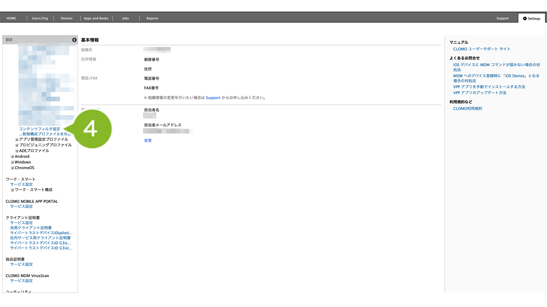 「コンテンツフィルタプロファイル」を個別適用しているデバイスには、削除コマンドの実行が必要です。