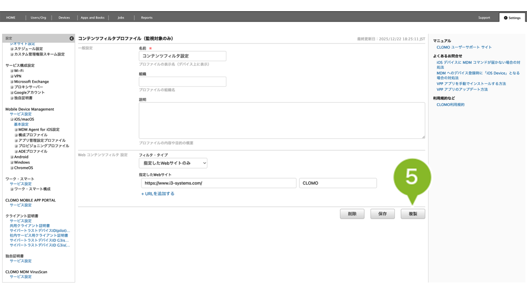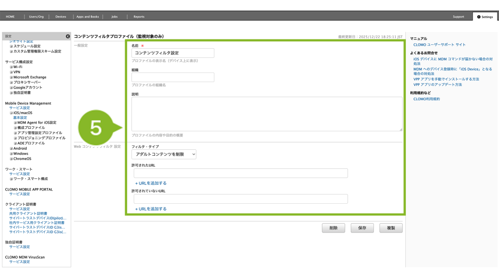 ・コンテンツフィルタプロファイルの作成・編集・複製・削除方法を確認したい方