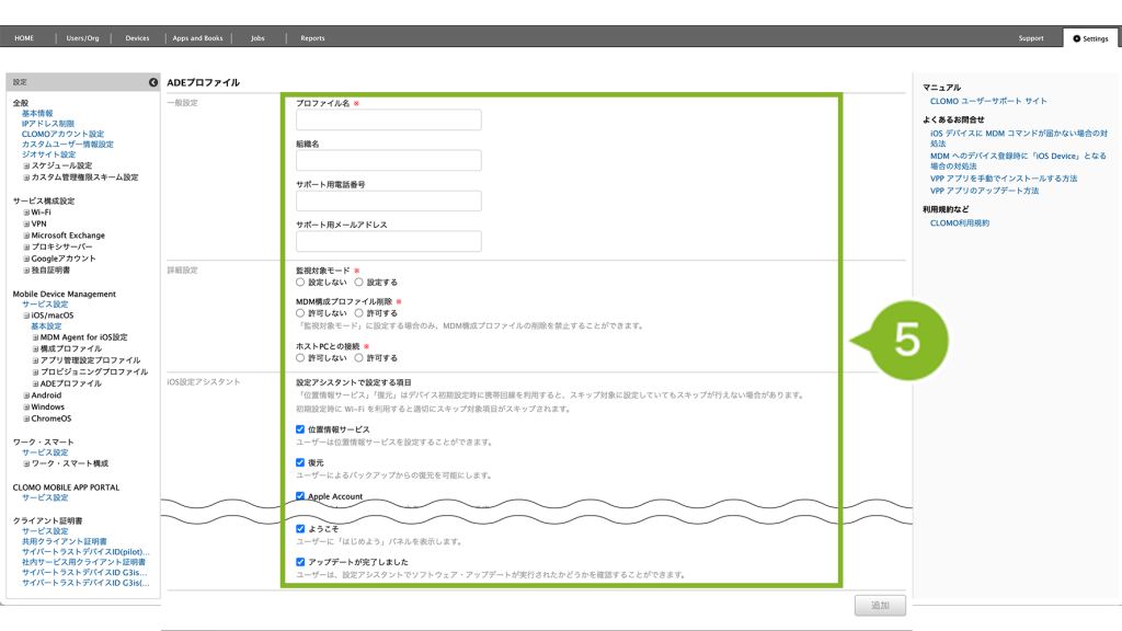 ADE プロファイルは、ADE デバイスをセットアップしたい場合に利用するプロファイルです。