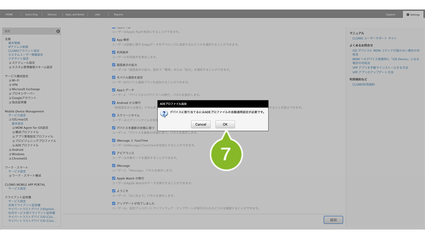 【iOS】ADE デバイスとして登録されていないデバイスを ADE 化する場合のセットアップをご参照の上、2-4までを完了させてください。