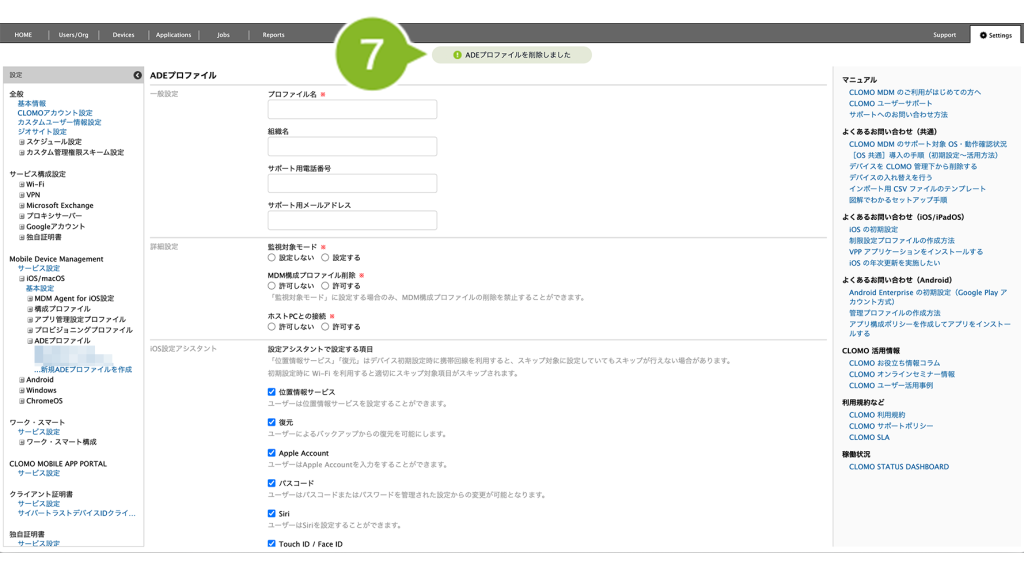 一度適用した ADE プロファイルをデバイスから削除するには、初期化が必要です。ご注意ください。