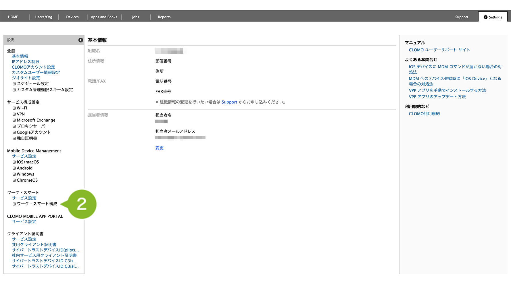 1. CLOMO PANEL にログイン後、[Settings]をクリックします。