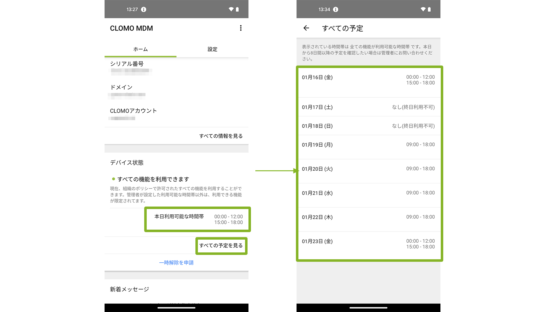 デバイスが利用可能な時間帯が表示されます。