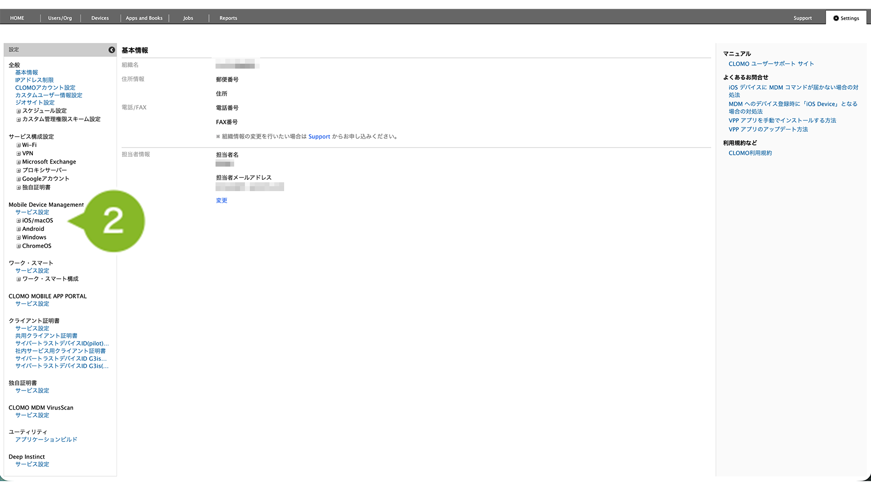 2.「Mobile Device Management」の[iOS/macOS]をクリックします。