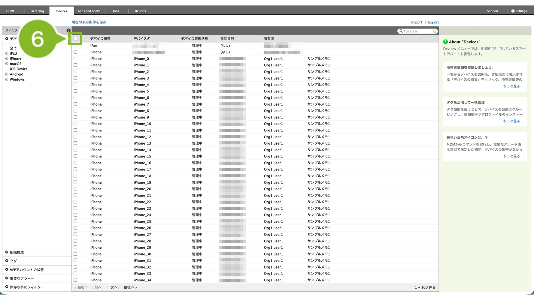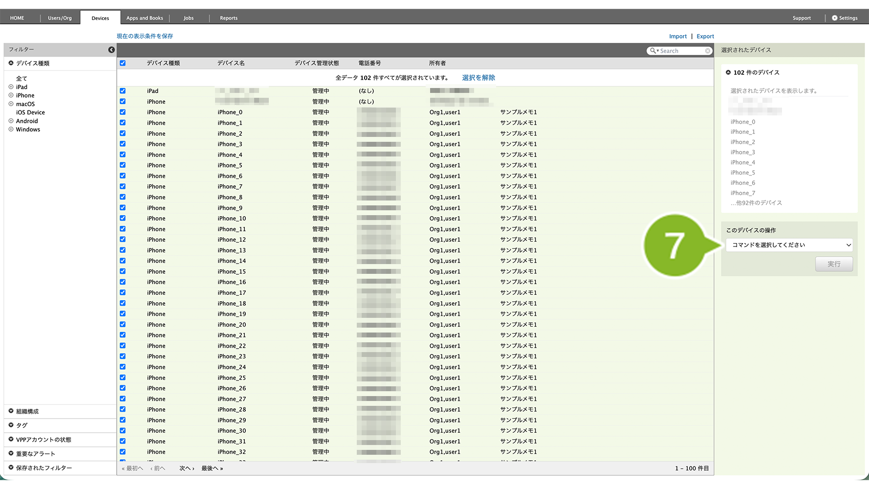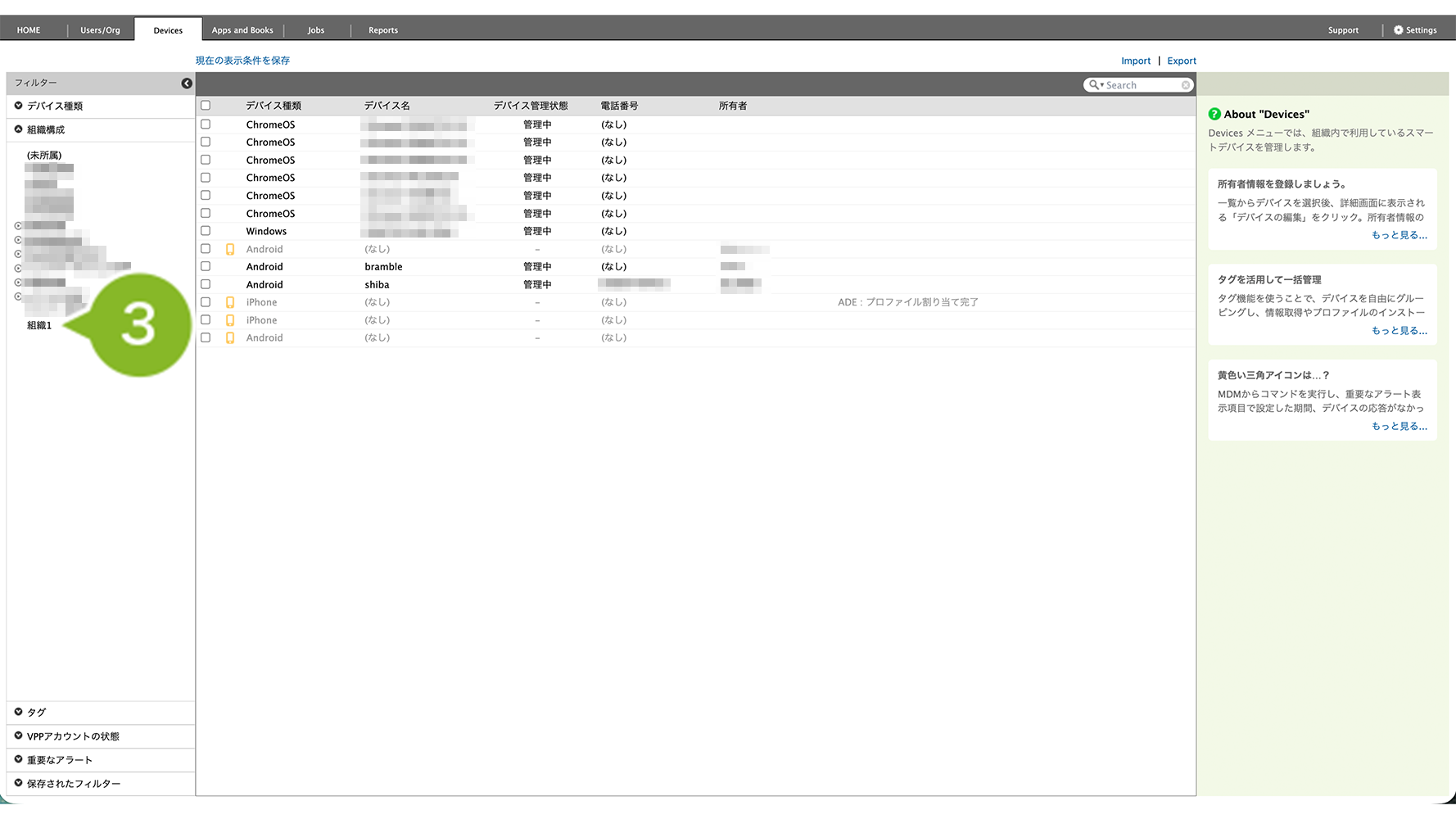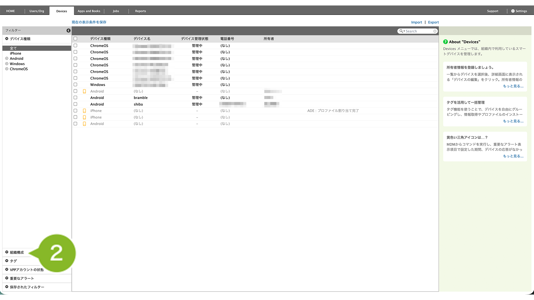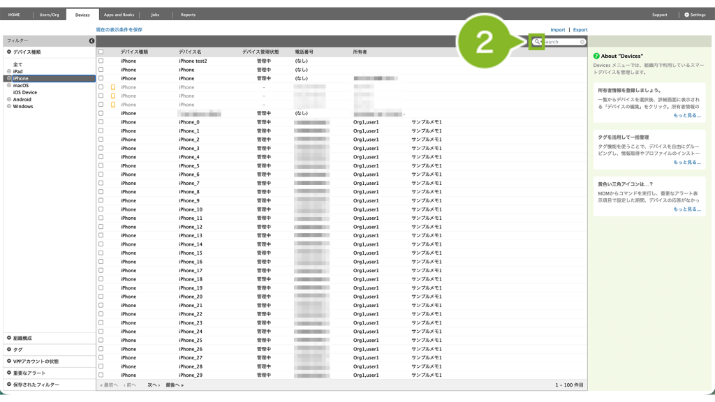 複数のデバイス(組織のデバイス・全デバイス)から