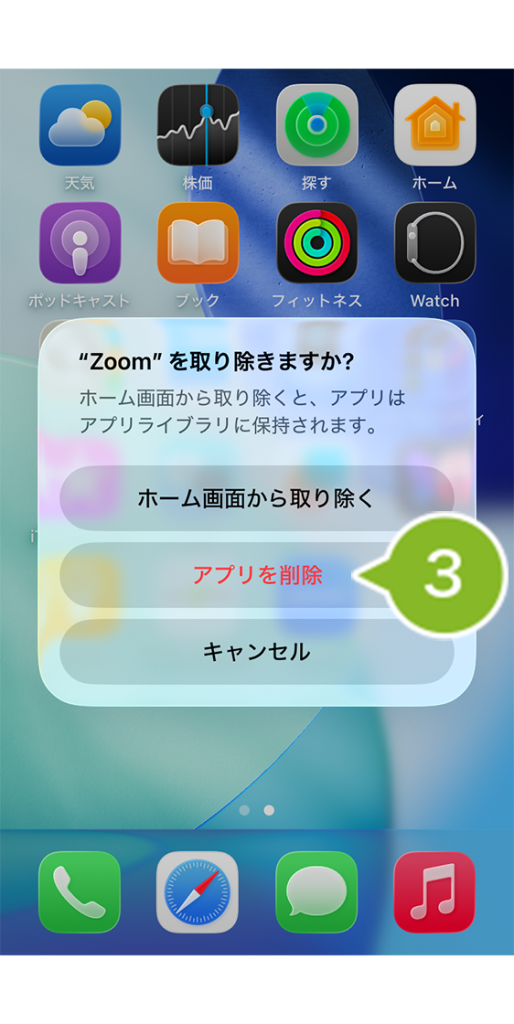 3.[アプリを削除]をタップします。