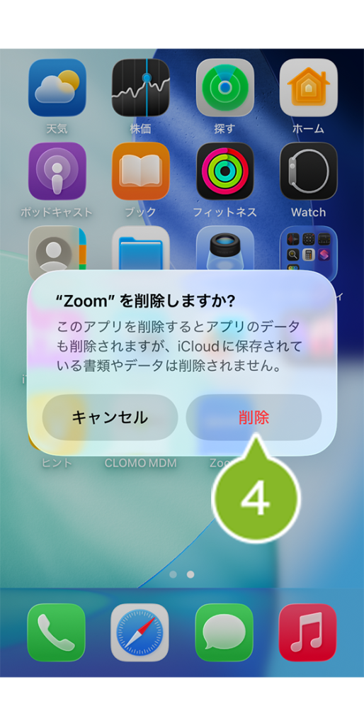 4.[削除]をタップすると、アプリケーションがアンインストールされます。