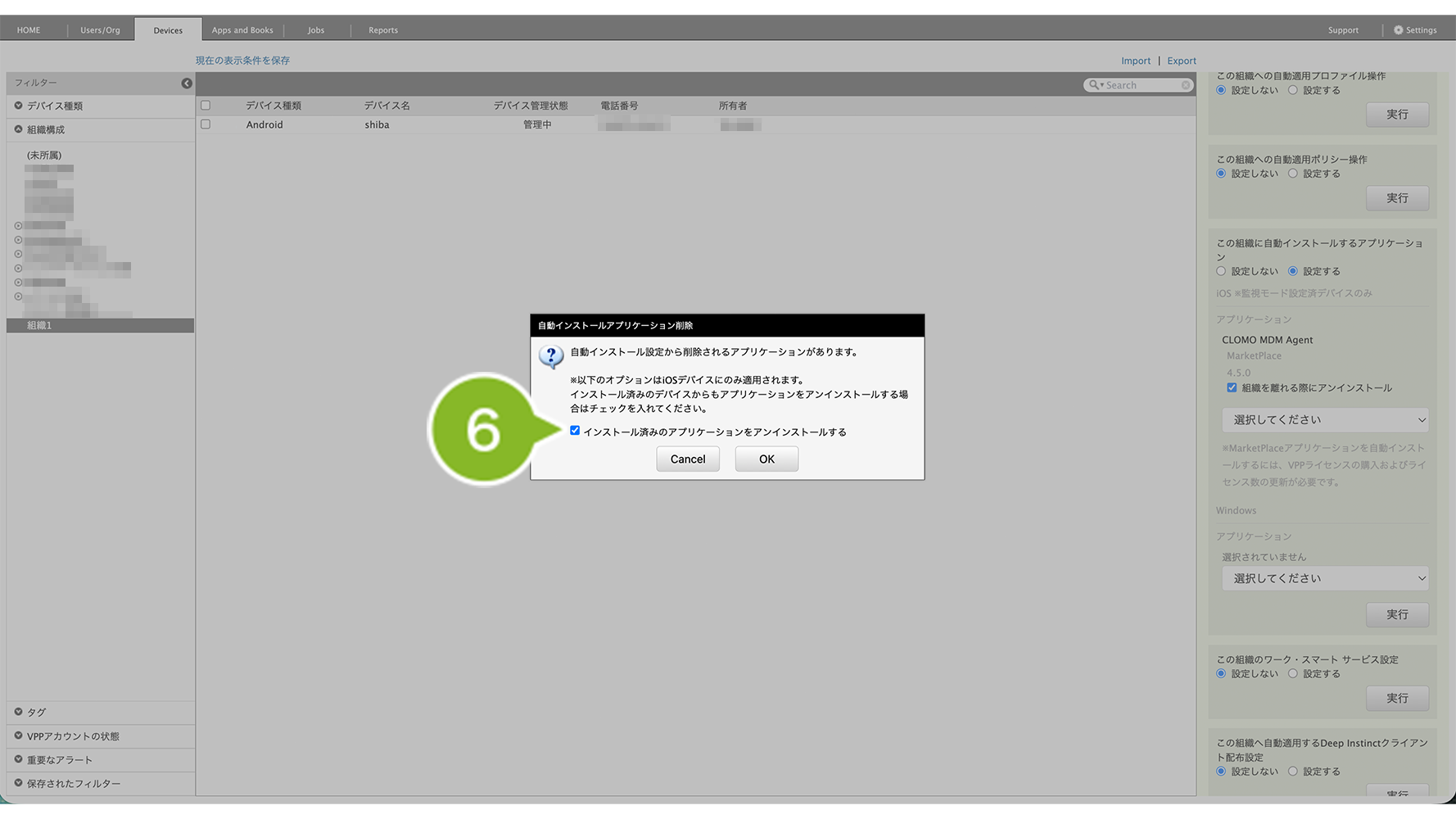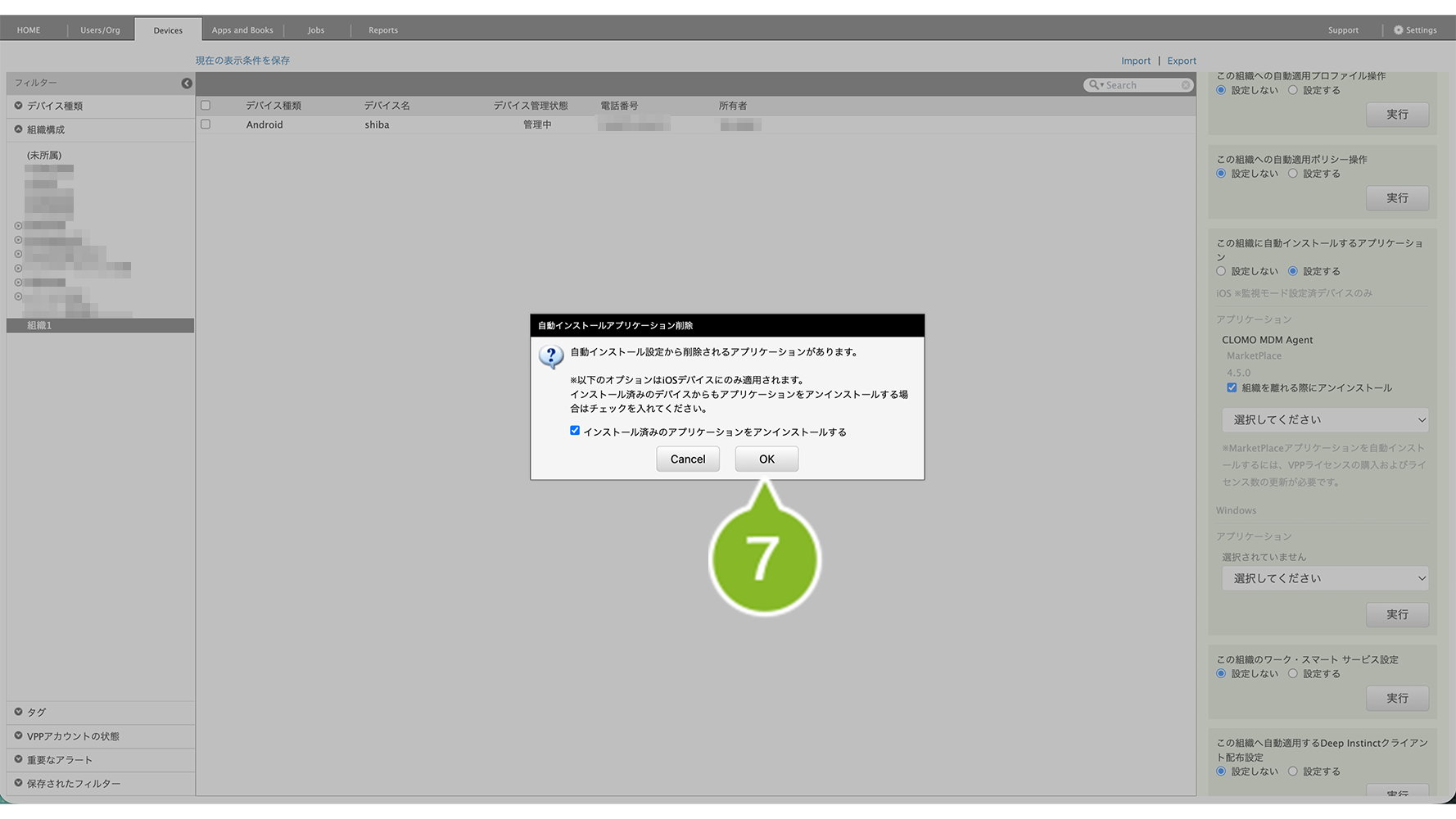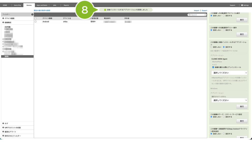 ※ 設定を保存すると、すでに組織に関連づけられている全デバイスに対して、設定内容が反映されますのでご注意ください。