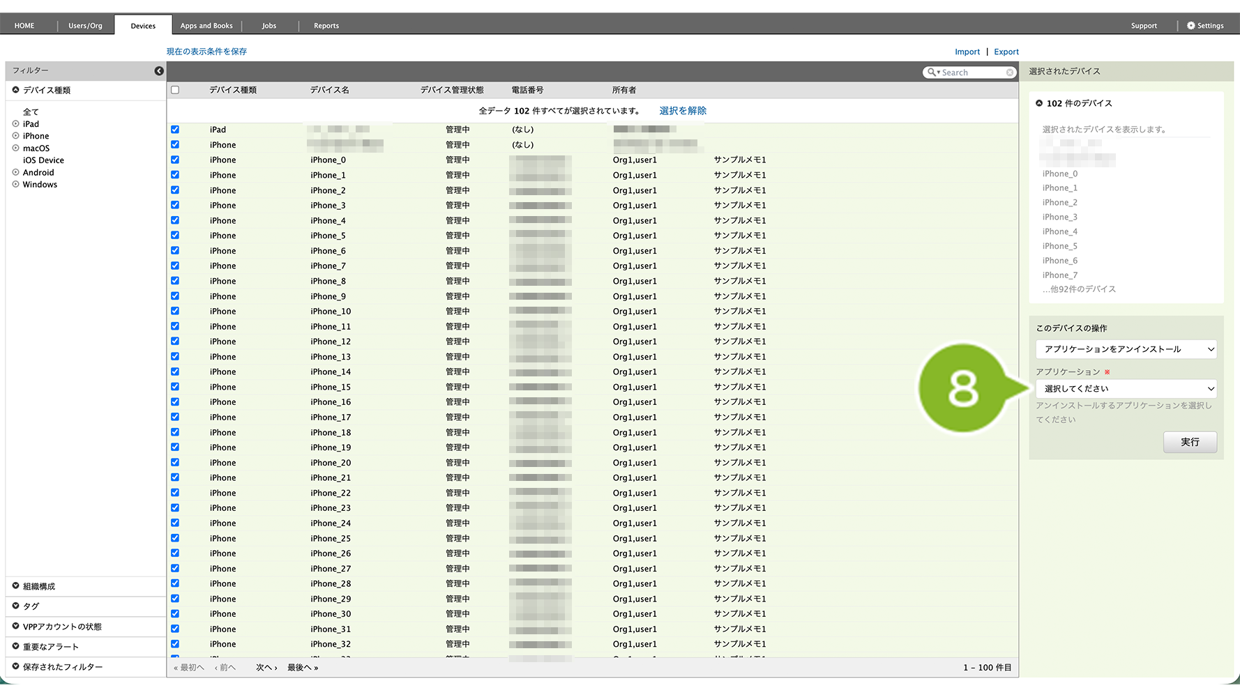 6. 検索結果が表示されます。デバイスを全選択します。