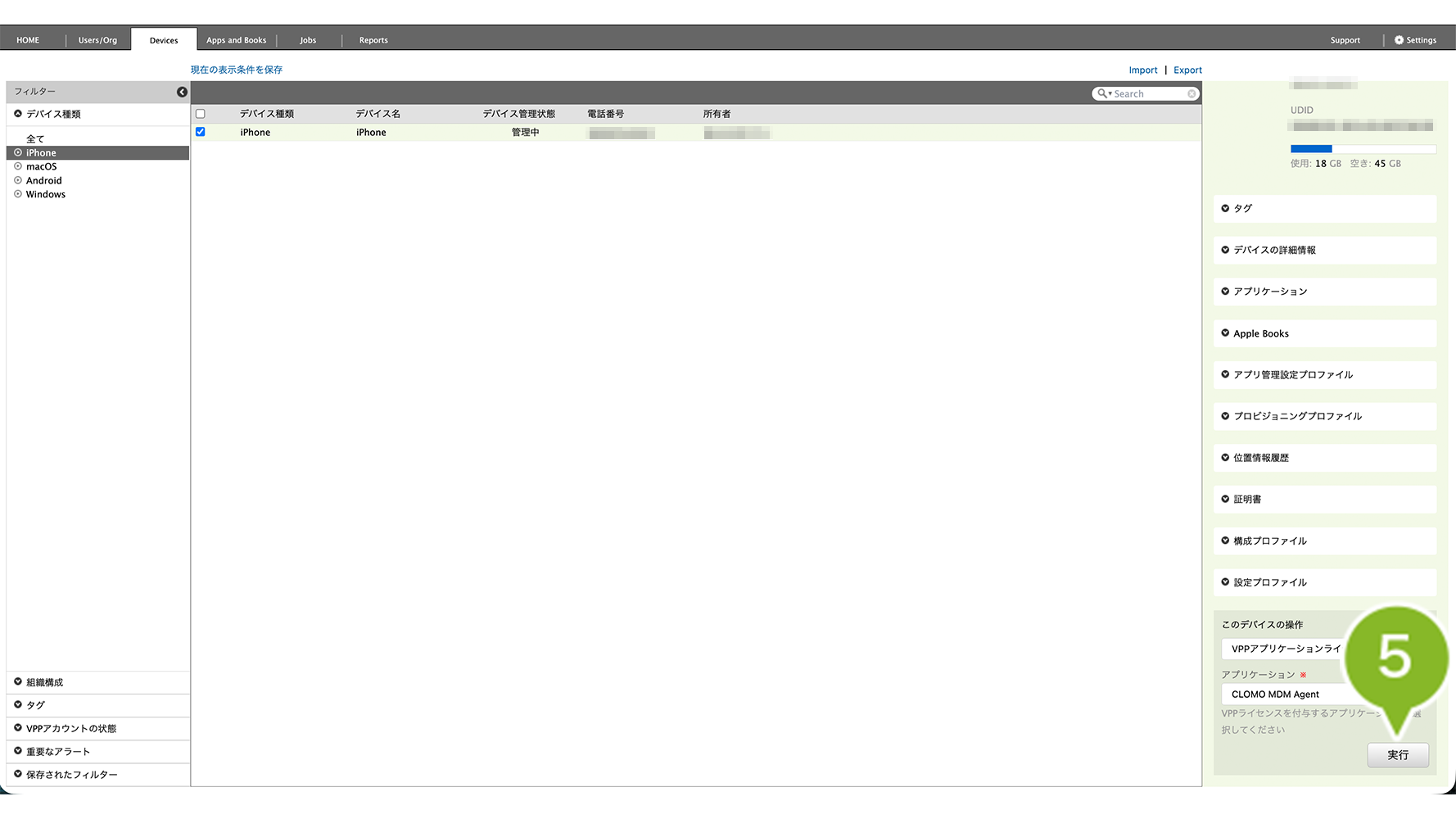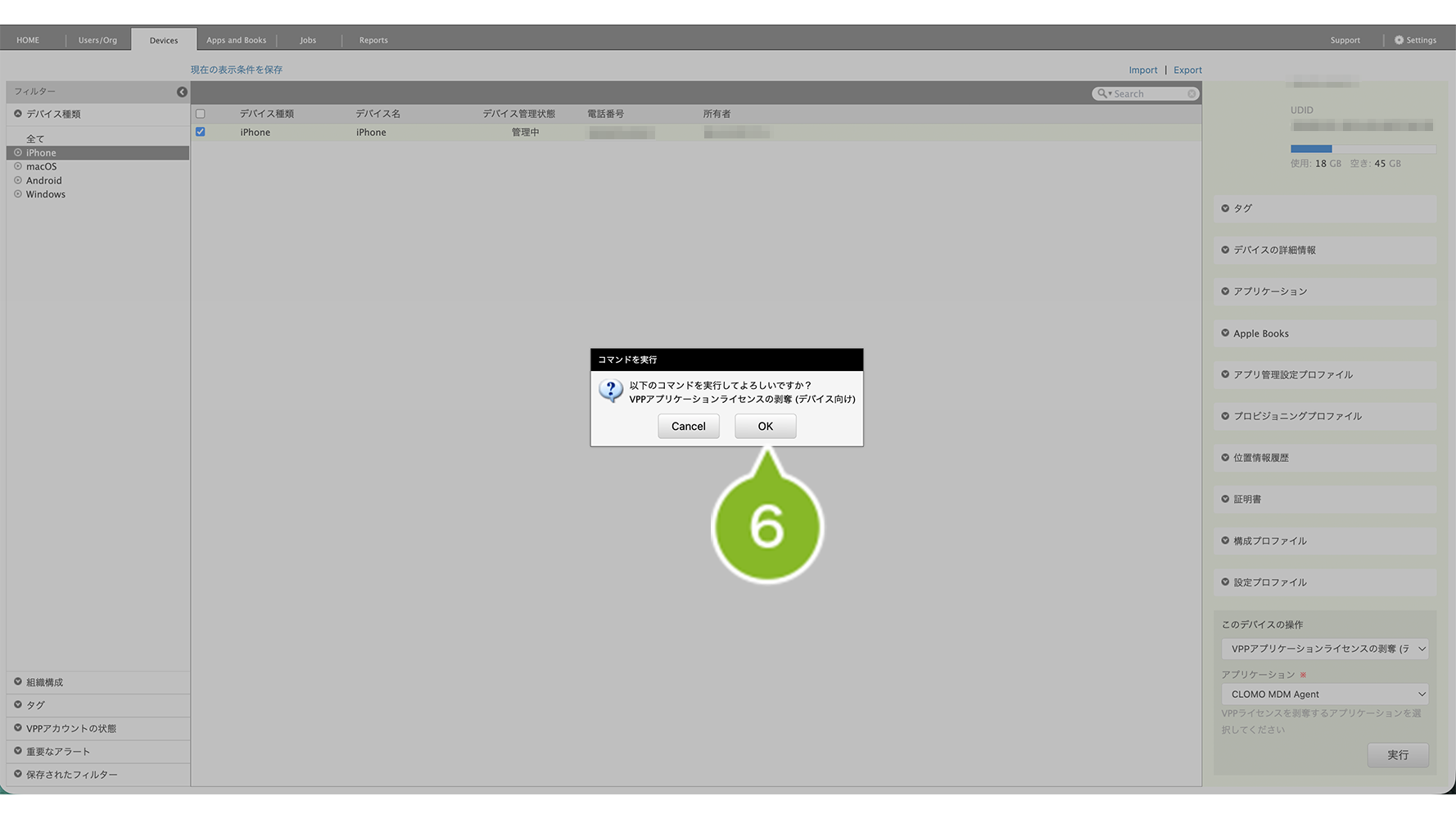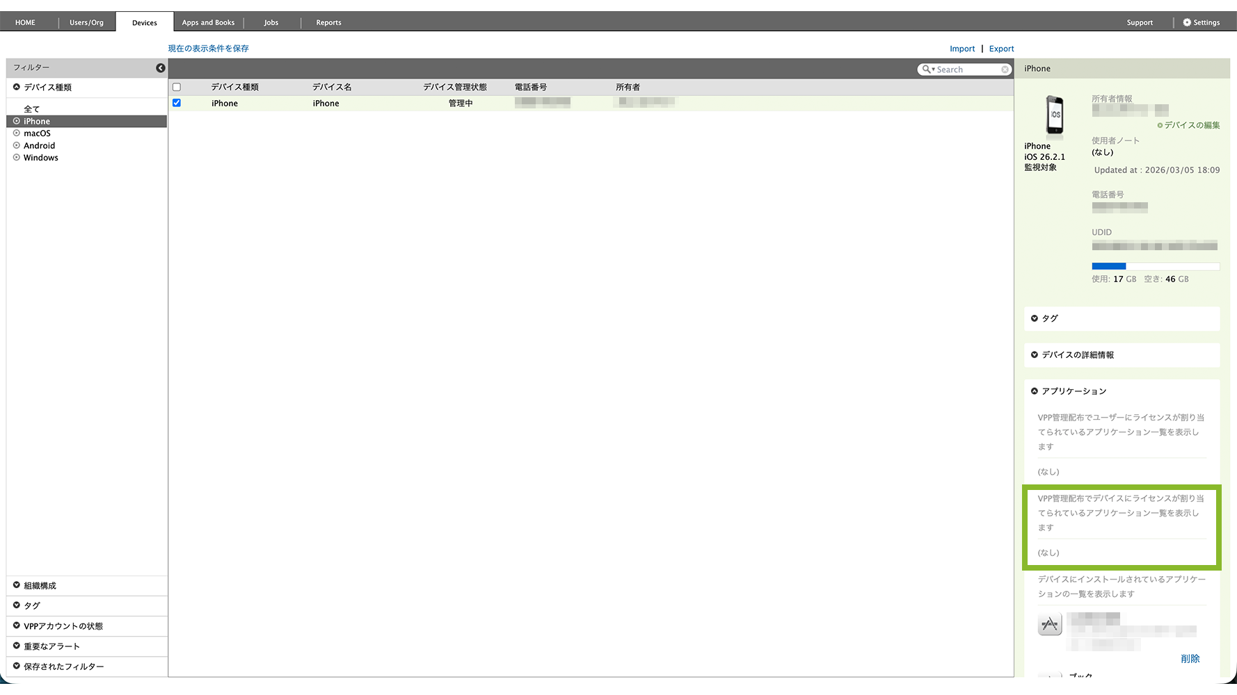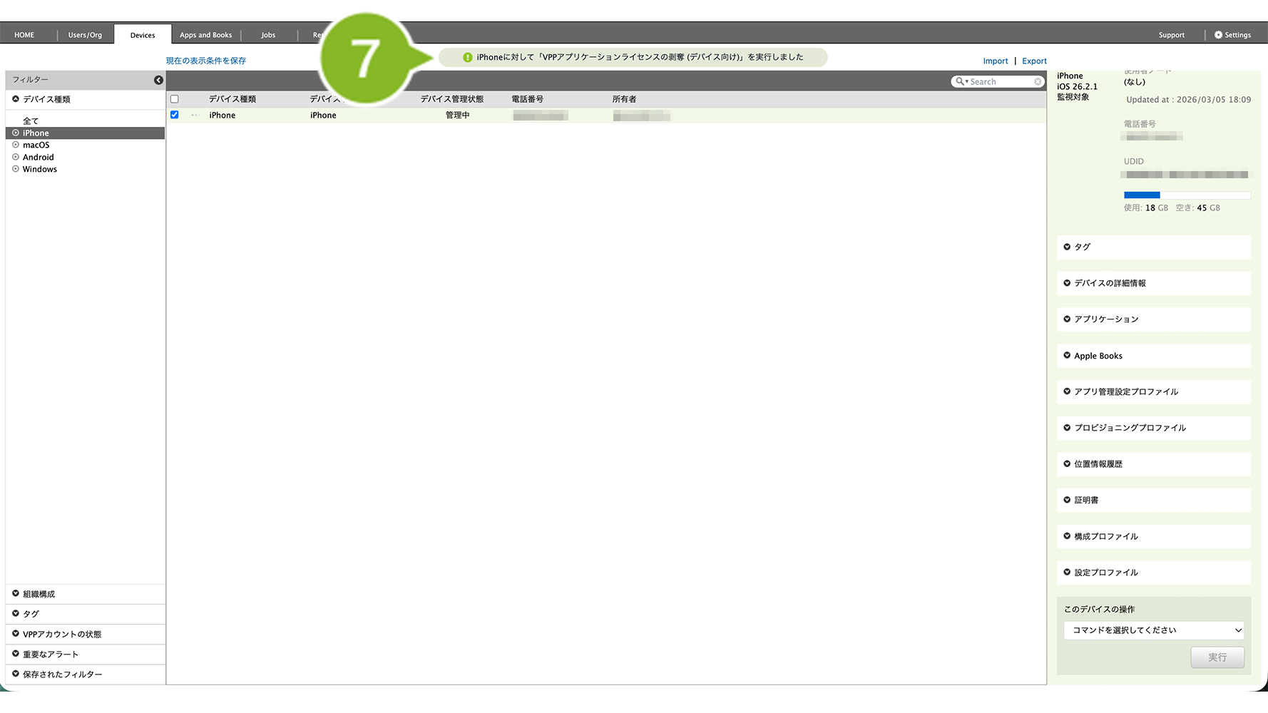 2. VPP ライセンスを剥奪したいデバイスを選択します。