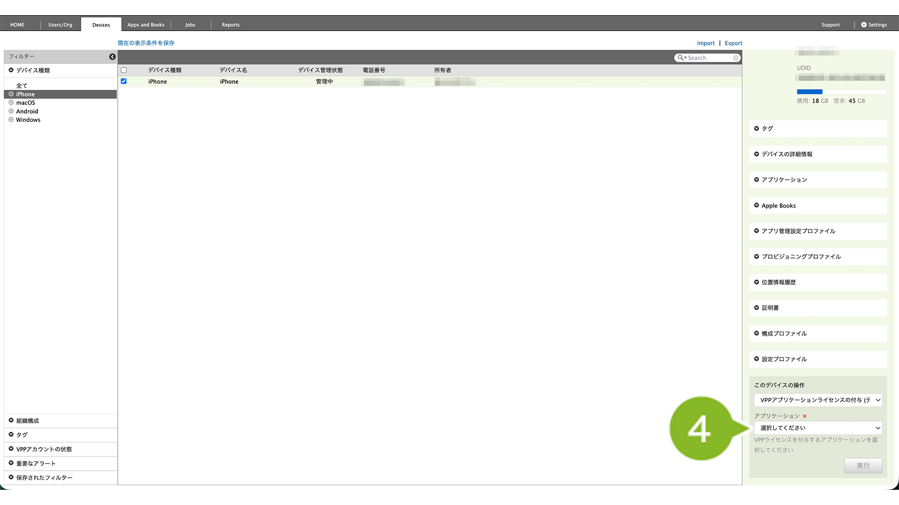 2. VPP ライセンスを付与したいデバイスを選択します。