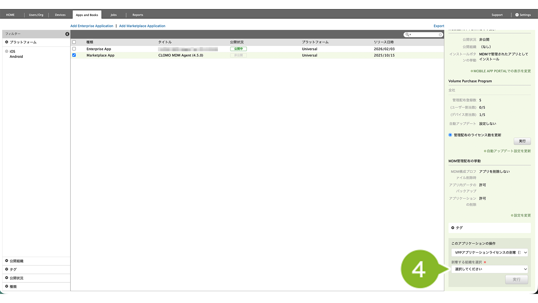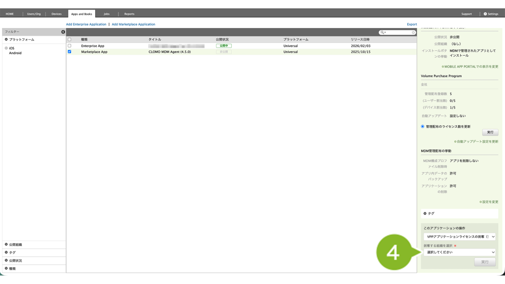 2. VPP ライセンスを剥奪したいアプリケーションを選択します。