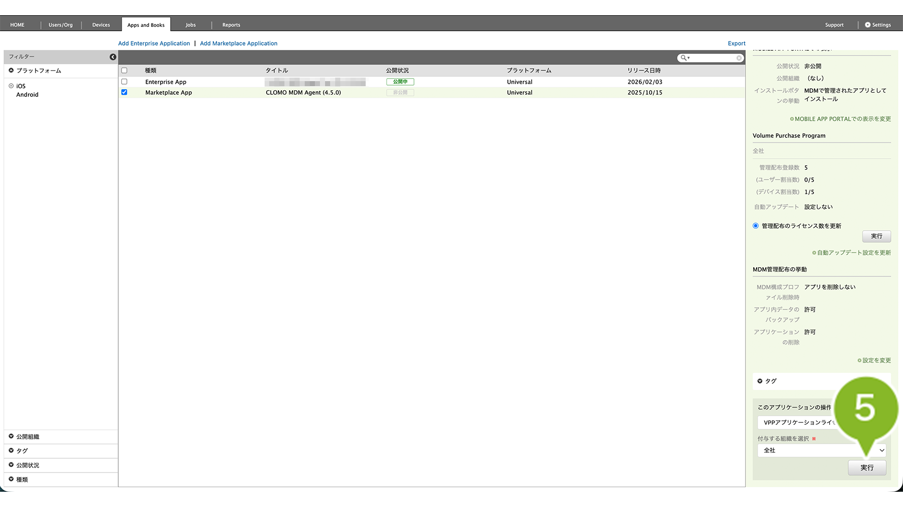 2. VPP ライセンスを付与したいアプリケーションを選択します。