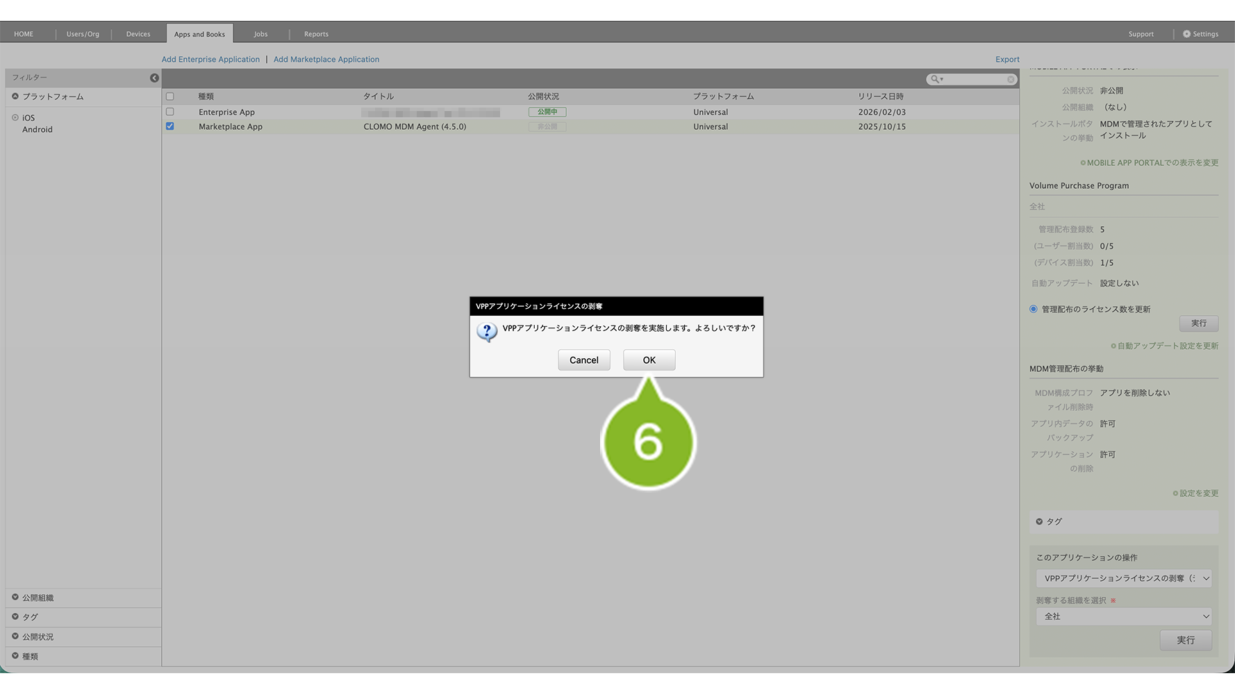 VPP アプリケーションライセンスを剥奪する