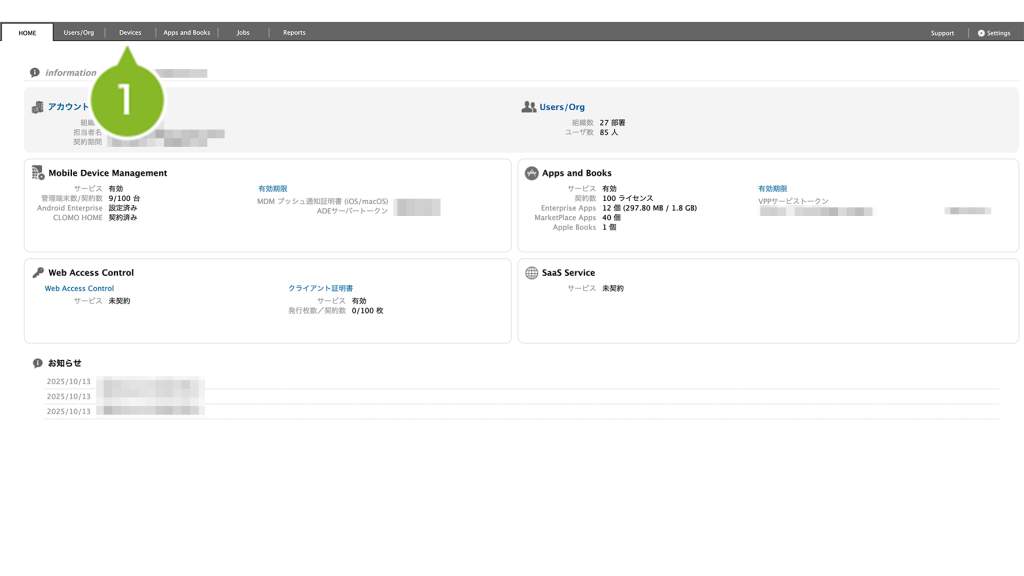 1. CLOMO PANEL にログイン後、[Devices]をクリックします。